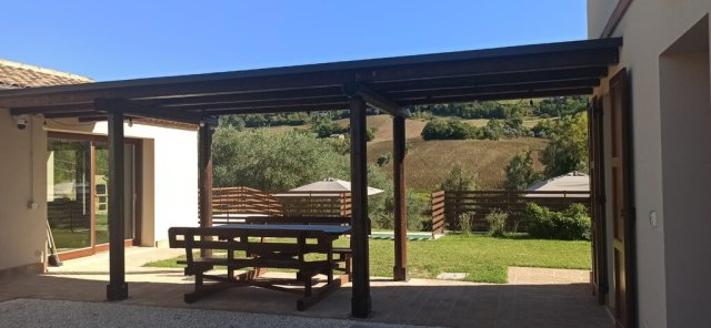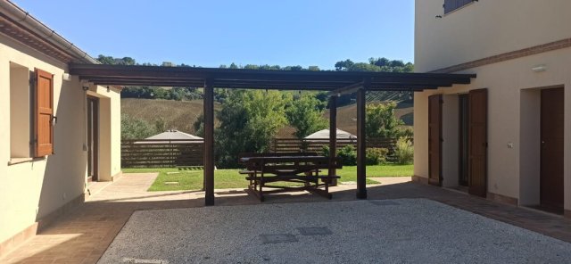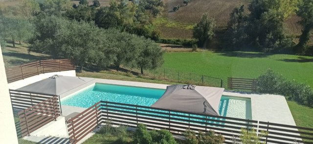 Immerso nel verde delle colline marchigiane, splendido casale nuovo! con mq. 20.000 di terreno piu' uliveto e corte di mq. 2.000 con piscina . Il casale e' suddiviso in due appartamenti piu' dependance indipendente open space P.T. salone con cucina, 2 camere matrimoniali con bagno in camera; primo piano ampio salone con camino, cucina , camera matrimoniale, cameretta, stanza pluriuso, bagnoDati Immobile