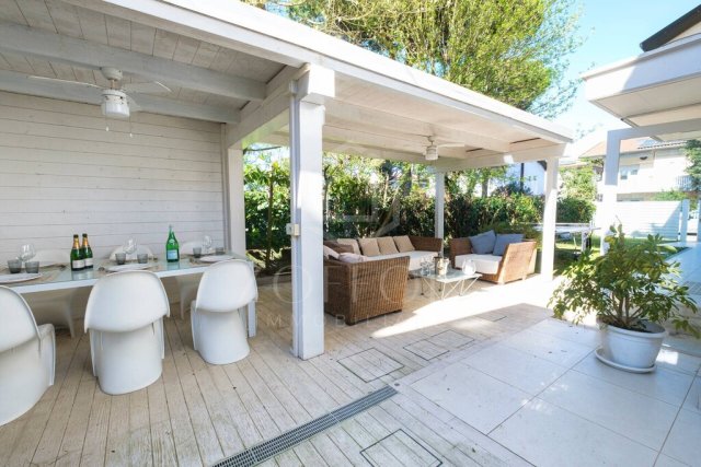 MILANO MARITTIMA - AFFITTO ESTIVO STAGIONALE SPLENDIDA VILLA CON GIARDINO E VASCA IDROMASSAGGIO. In zona signorile, silenziosa e residenziale, a 800 m dal centro di Milano Marittima e di Cervia, si affitta solo stagionalmente grande villa bifamiliare sviluppata su più livelli. Al piano terra ingresso su ampio e luminoso soggiorno con grandi vetrate e camino, cucina abitabile e bagno, al piano supeDati Immobile