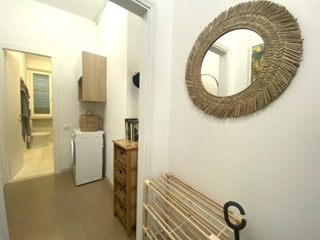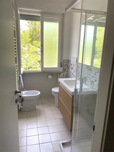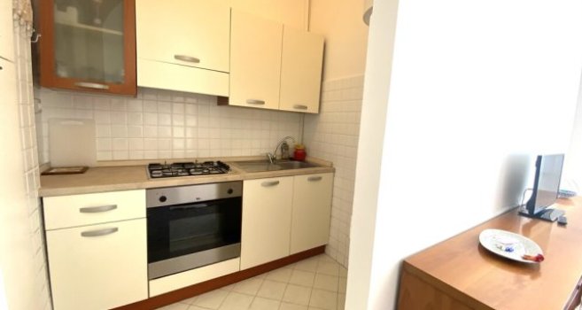 MILANO MARITTIMA - AFFITTO ESTIVO SETTIMANALE BILOCALE RISTRUTTURATO CON TERRAZZO. In zona tranquilla, a due passi dalla pineta, dal centro e dalla spiaggia, si affitta ampio bilocale al 1 piano in condominio, composto da: ingresso, luminoso soggiorno con cucinotto, divano letto e accesso al terrazzo abitabile, camera matrimoniale con letto matrimoniale e letto singolo (tot. 5 posti letto), bagno.Dati Immobile