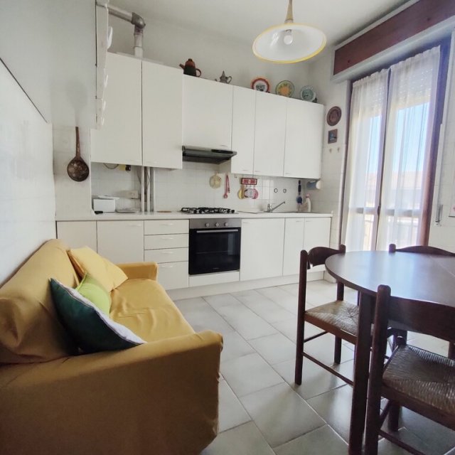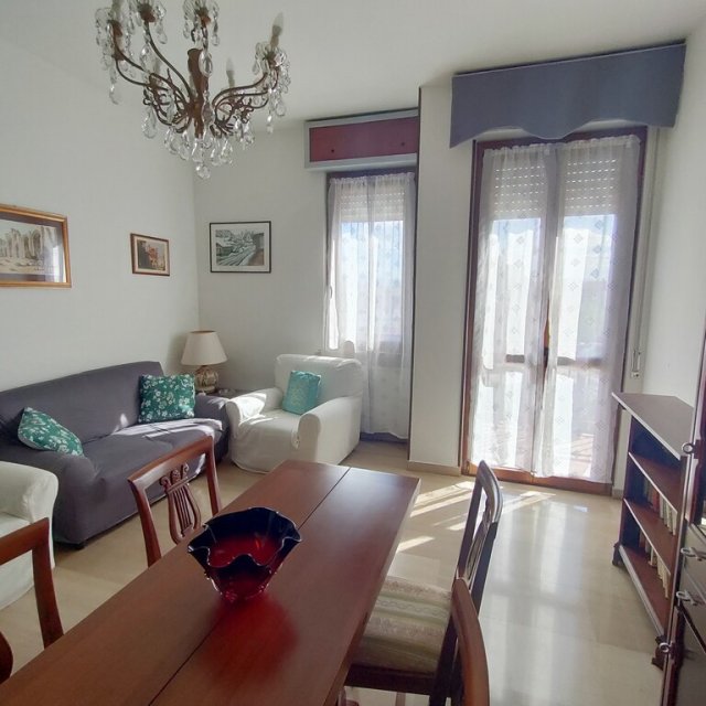 In piccola palazzina, ampio appartamento arredato posto al terzo piano senza ascensore, composto da ingresso, cucina abitabile, soggiorno, 2 camere letto, bagno, ripostiglio, 2 balconi, cantina e box. L'appartamento presenta serramenti in pvc con vetrocamera di recente sostituzione, porta blindata, aria condizionata e riscaldamento autonomo.Dati Immobile