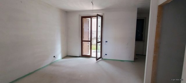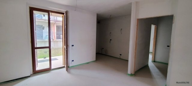 Monte San Giusto, zona San Giacomo, quartiere residenziale molto tranquillo. Appartamento nuovo al piano terra con ingresso indipendente in piccolo contesto condominiale. Immobile di 77 metri quadri composto da: soggiorno con angolo cottura, due camere matrimoniali, bagno finestrato e secondo bagno di servizio cieco, disimpegno. Riscaldamento a pavimento e pompe di calore caldo/freddo. Corte pavimentata esclusiva e giardino privato. Garage finestrato al piano seminterrato. Tempi di consegna circa 4 mesi. Possibilità di scegliere alcune finiture interne ed i materiali. Edificio composto da poche unità, spese condominiali ridottissime. Classe energetica B.Dati Immobile