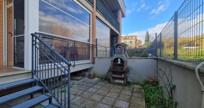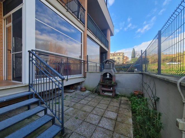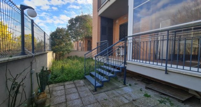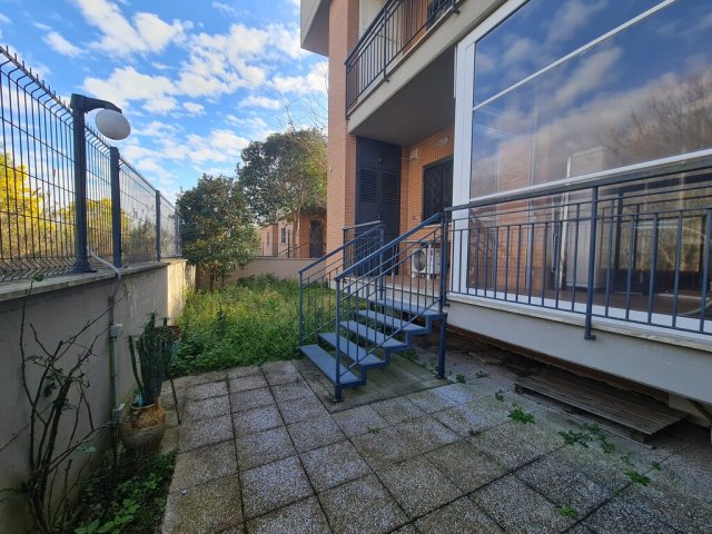 Bilocale piano terra con giardino, ottimo stato interno, affaccio libero sul verde in comprensorio privato con palazzine in cortina di soli due piani.Presente un posto auto scoperto privato nell'aria condominiale, video-sorvegliata.Dati Immobile